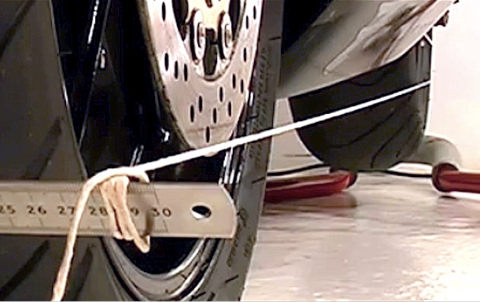 • Here is an instructional photo by a motorcycle forum expert showing how to align wheels using string.